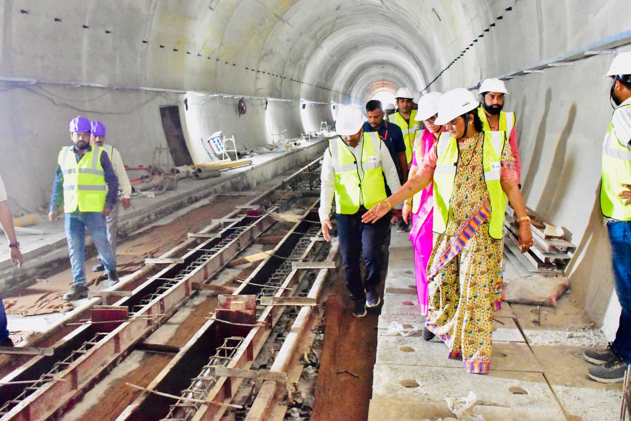 श्रीमती सावित्री ठाकुर ने जमीन से लगभग 70 फीट नीचे उतरकर किया रेलवे टनल निर्माण कार्य का निरीक्षण, इंदौर दाहोद रेल परियोजना निर्माण कार्य को समय सीमा में पूर्ण करने के दिये निर्देश