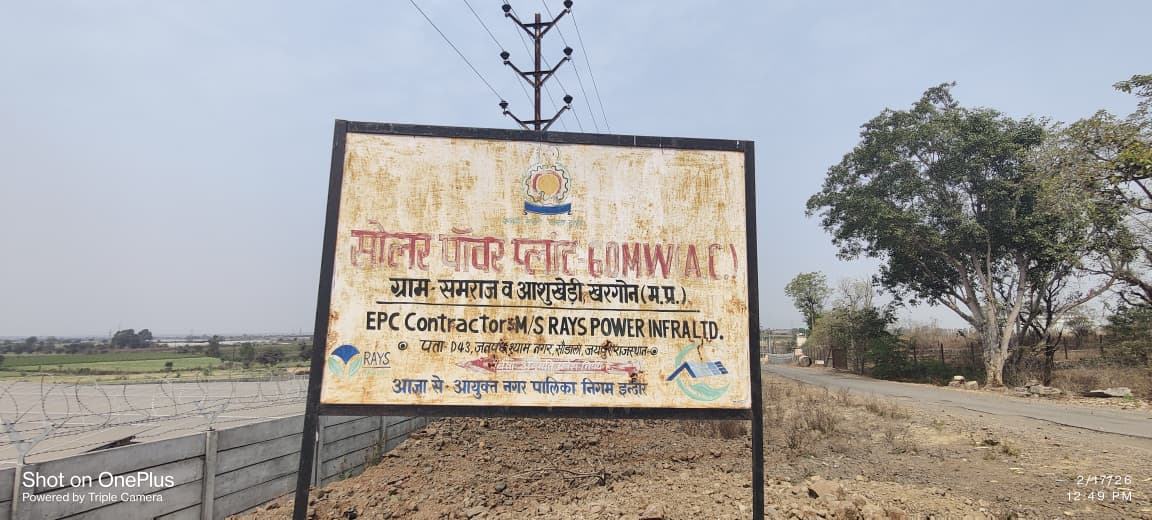 ग्राम समराज व आशुखेड़ी में स्थित इस परियोजना की कर रहित कुल लागत ₹271.16 करोड़ रुपए है, जिसमें 10 वर्षों की O&M राशि सम्मिलित है। परियोजना हेतु इंदौर नगर निगम को लगभग ₹42 करोड़ रुपए की वायबिलटी गैप फंडिंग तथा ₹244 करोड़ रुपए पब्लिक ग्रीन बॉण्ड के माध्यम से प्राप्त हुए हैं। इस परियोजना का निर्माण 210.84 एकड़ भूमि में किया गया है तथा यह अत्याधुनिक DCR (Made in India) Mono PERC तकनीक पर आधारित है।